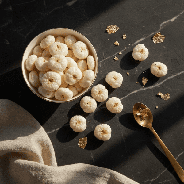 Harvested from the seeds of the aquatic plant Euryale ferox, these light, airy puffs have earned a respected place in traditional diets for centuries, valued for their delicate crunch, mild flavor, and impressive nutritional qualities that make them suitable for modern mindful eating habits. Grown in still water bodies such as ponds and wetlands, the plant produces spiky fruits that contain round seeds, which are carefully collected, dried, roasted, and popped through a specialized heating process that transforms them into the familiar white, expanded form enjoyed across many regions. This transformation is both fascinating and skill-intensive, requiring controlled heat to ensure the dense black seeds burst open into soft, crisp morsels without burning. The resulting texture is uniquely satisfying—light yet substantial, crisp yet gentle on the teeth—making them an appealing alternative to heavily fried snack options. Their subtle, slightly nutty taste allows them to absorb seasonings beautifully, whether lightly salted for simplicity, dusted with aromatic spices for warmth, or coated with natural sweeteners for a hint of indulgence. Nutritionally, these popped water lily seeds are appreciated for being relatively low in calories compared to many conventional snack foods, while still offering plant-based protein, fiber, and important minerals such as magnesium, phosphorus, and potassium that support metabolic balance and muscle function. Their carbohydrate profile provides steady energy without excessive heaviness, making them suitable for individuals seeking lighter snack choices during busy days. Because they are naturally gluten-free, they align well with dietary preferences that limit wheat and related grains, expanding accessibility for diverse nutritional needs. The fiber content contributes to digestive comfort by promoting regularity and supporting gut health, while their antioxidant compounds help combat oxidative stress, contributing to overall vitality and cellular protection. Traditionally, they have also been incorporated into fasting diets due to their perceived lightness and nourishing quality, offering sustenance without overwhelming the digestive system. In culinary applications, these airy kernels can be dry-roasted in a pan to enhance crispness before being tossed with clarified butter or cold-pressed oils and sprinkled with spices such as cumin, turmeric, black pepper, or chili powder, creating flavorful blends that satisfy savory cravings. Sweet variations often involve caramelizing them lightly with jaggery or blending them into kheer-like milk puddings, where they soften slightly and contribute texture contrast. They can also be ground into flour and used in flatbreads or porridge-style dishes, providing versatility beyond snacking. Health-conscious consumers value them as a wholesome addition to trail mixes, energy bowls, and lunchboxes, where their airy structure adds volume and crunch without excess fat. The protein present in these seeds supports muscle maintenance and satiety, making them a thoughtful inclusion in balanced diets focused on portion awareness and sustained energy. For individuals focused on cardiovascular well-being, their low saturated fat content and presence of beneficial nutrients can complement heart-supportive eating patterns when combined with fruits, vegetables, and whole grains. In skin and wellness traditions, the antioxidants and minerals within these seeds are believed to contribute indirectly to a healthy glow by supporting internal balance. Their lightness also makes them appealing to those practicing mindful eating, as each bite encourages slower chewing and greater sensory awareness compared to dense, processed alternatives. The cultivation of the aquatic plant from which they originate is an important livelihood activity in certain rural communities, particularly in parts of India and East Asia, where farmers manage ponds carefully to ensure optimal growth conditions. The process of harvesting involves wading into water to collect mature fruits, extracting the seeds, drying them under sunlight, and storing them before roasting and popping, demonstrating a harmonious relationship between agriculture and natural ecosystems. Sustainable pond management supports biodiversity, as these water bodies often coexist with fish, birds, and aquatic vegetation. Economically, the trade of these popped seeds supports thousands of families involved in farming, processing, packaging, and distribution, contributing to rural income generation and preserving traditional knowledge passed down through generations. Modern packaging techniques have improved shelf stability, protecting the delicate texture from moisture and extending freshness so consumers worldwide can enjoy them. Their adaptability to contemporary flavor trends has led to innovations such as herb-infused varieties, peri-peri blends, chocolate-coated versions, and even inclusion in granola clusters, reflecting their capacity to bridge tradition and modern snacking culture. Fitness enthusiasts appreciate their light yet energizing nature, often consuming them pre- or post-workout as a plant-based option that does not feel heavy. Because they are easy to portion and transport, they fit seamlessly into busy lifestyles, whether carried in small containers for office breaks or enjoyed during travel. Parents often favor them as a child-friendly snack due to their gentle crunch and ability to hold mild seasonings without excessive salt or artificial additives. From a sensory perspective, the crisp sound produced when bitten enhances satisfaction, while their neutral base allows creativity in flavor development. They can be combined with roasted lentils, nuts, and seeds to create balanced snack mixes, offering diverse textures and nutritional benefits in a single bowl. Culinary experimentation continues to expand their presence beyond traditional markets, as chefs incorporate them into sala